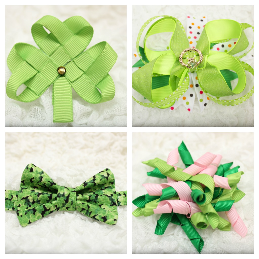 Option 2: A Korker Hair Bow, Shamrock Ribbon Clip, and pair of pigtail bows.