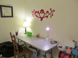 This fall has been a BUSY time in my little studio, making hair bows until my finger prints wear burn off. I’ve found the white walled room a little stark though, isolating and uninspiring as I worked at my table facing the blank wall. Small improvements were made – a candle, more lights, my tablet occasionally propped on the table streaming netflix for some company.