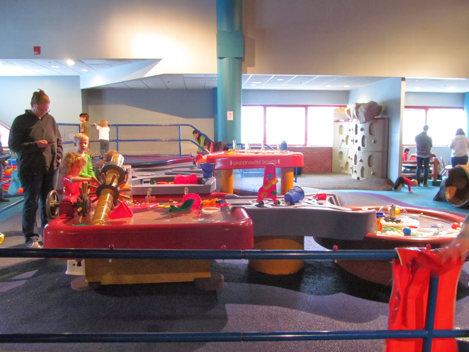 While there are TONS of things to do at the science center, for right now, we hang out mainly in the Exploration Station Jr. on the fourth floor. This one area is enough to keep us busy for at least an hour or two, which is about the extent of our outings.
